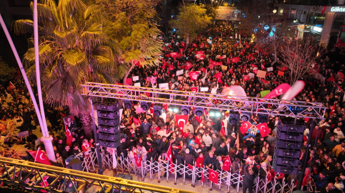 Konuşması sık sık Ekrem İmamoğlu’na destek sloganlarıyla kesilen Başkan Zeydan Karalar şöyle devam etti: “İnsanların tepkisinin Sağ’ı Sol’u yok. Sağ da Sol da bir aradayız. Ulu Önder Mustafa Kemal Atatürk’ün kurduğu laik, demokratik Cumhuriyetin, hukukun üstünlüğünün devamından yana olduğumuz için buradayız. Ekrem Başkana destek toplantılarına katılanların sayısı artıyor. Bu çok önemli. Biz bu mücadeleyi kazanacağız. Başlattığımız demokratik mücadeleyi muhakkak kazanacağız. Ülkemizde bütün kesimler mutsuz ama sonunda her şey çok güzel olacak. Biz Türkiye Cumhuriyeti’ni ilelebet yaşatmaktan başka bir düşünce içinde değiliz. Adanalılar olarak Ekrem Başkanın yanındayız.”