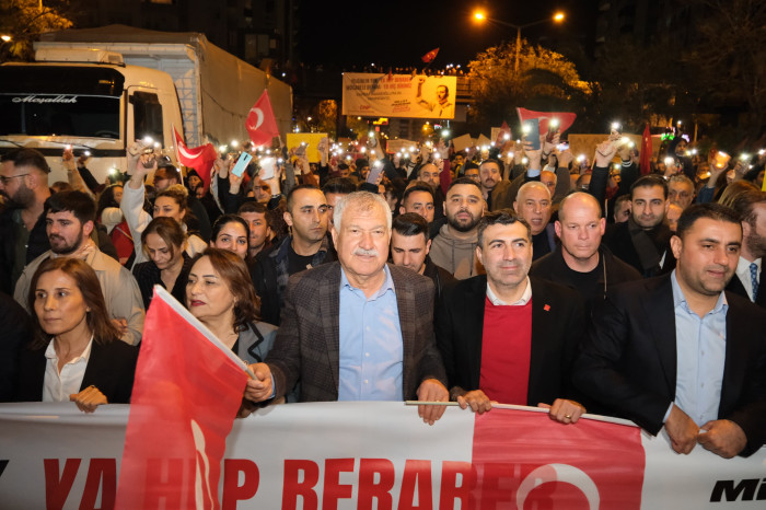 Ekrem İmamoğlu’nun gözaltına alınıp tutuklanmasının ardından yurt genelinde başlayan protesto yürüyüş ve mitingleri Adana’da da devam ediyor. 23 Mart 2025 Pazar günü akşam saatlerinde Çukurova İlçesi Uğur Mumcu Bulvarı’nda toplanan on bini aşkın Adanalı, Uğur Mumcu Bulvarı’na kadar yürüdü ve miting gerçekleştirdi.