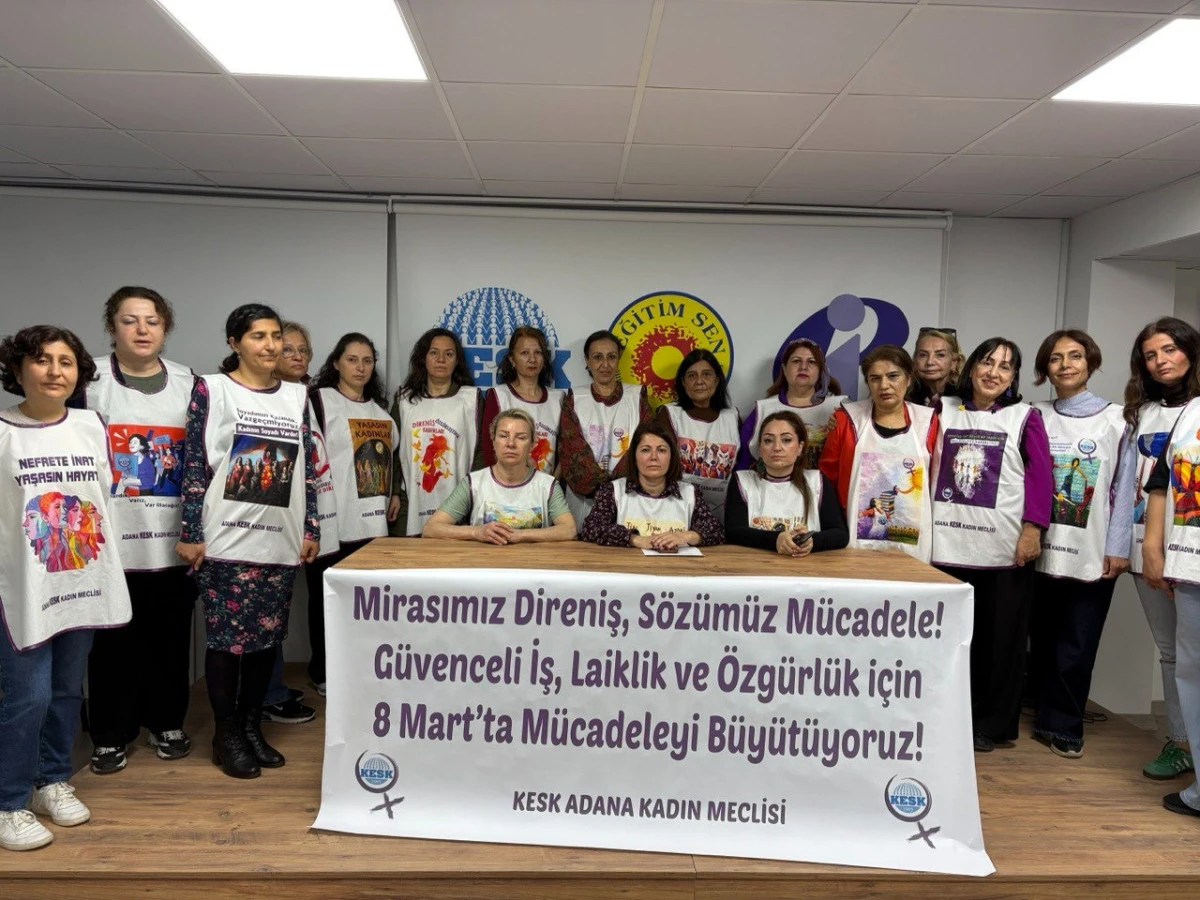 KESK Adana Kadın Meclisi, 8 Mart sürecini kahvaltı buluşmasından atölyelere, basın açıklamasından kadın zincirine, film gösteriminden miting ve Feminist Gece Yürüyüşü’ne uzanan kapsamlı bir programla başlattı. Kadınlar, “Yoksulluğa, şiddete, güvencesizliğe karşı barış, laiklik ve özgürlük mücadelesini büyütüyoruz” diyerek alanlara çıkacaklarını ilan etti.