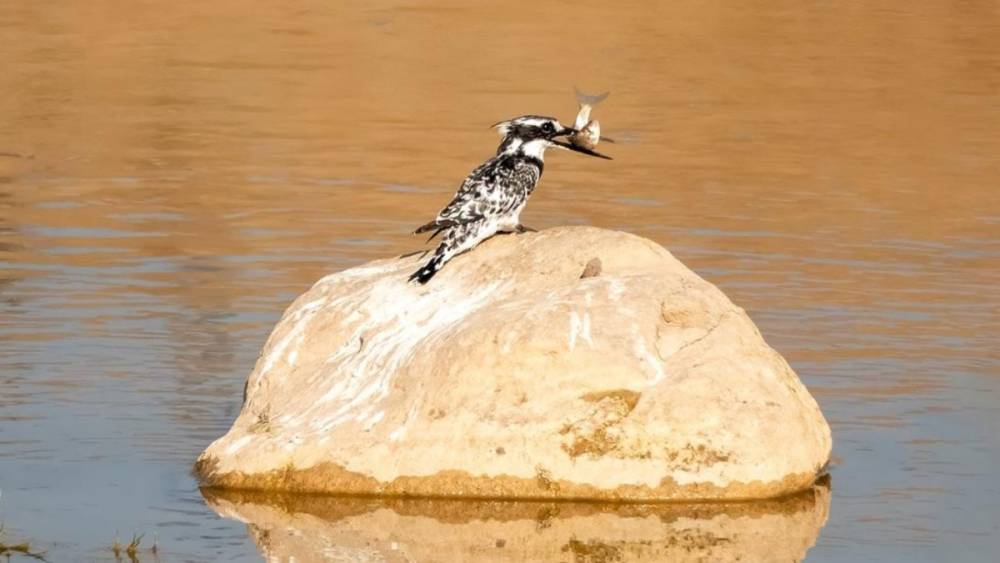 ADIYAMAN (PERRE) - Murat KAYIŞ - Adıyaman'ın Bircik Köyü çevresindeki çay yatağında, kentte bugüne kadar hiç kayıt altına alınmamış bir kuş türü ilk kez görüntülendi. Doğa Fotoğrafçısı Ferit Gölgül tarafından fotoğraflanan Alaca Yalı Çapkını, diğer adıyla Siyah Beyaz Yalıçapkını, avlanma anında objektife yansıdı.
