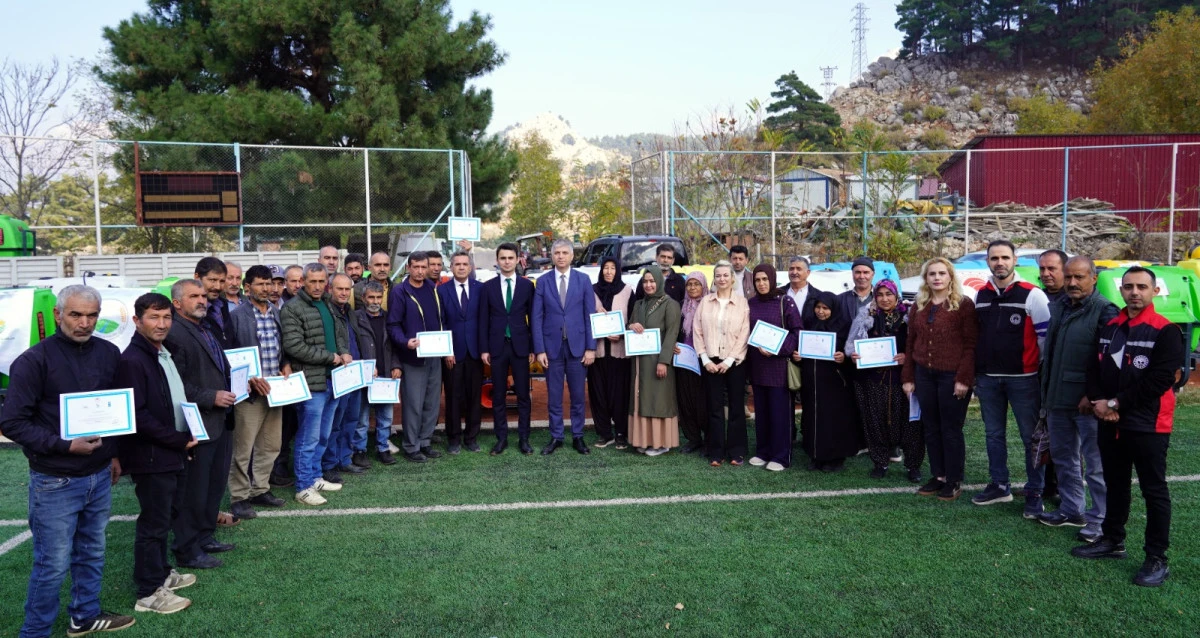 Programın sonunda, yüzde 70 hibeli pülverizatör almaya hak kazanan üreticilere teslim belgeleri Kaymakam Kurdu ve İl Müdürü Bayazıt tarafından takdim edildi. Üreticiler, teslim aldıkları makineleri traktörlerine bağlayarak arazilerine götürdü.