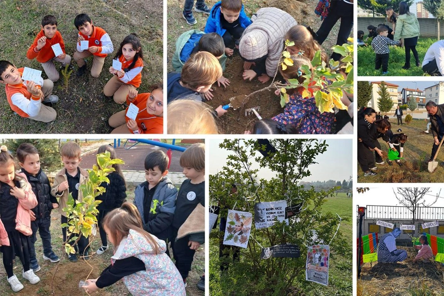 Milli Eğitim Bakanlığı'na bağlı 81 ildeki okullarda düzenlenen etkinliklerde öğrenciler, Atatürk ve vatan sevgisine ilişkin mesajlarını yerleştirdikleri fidanları toprakla buluşturdu.