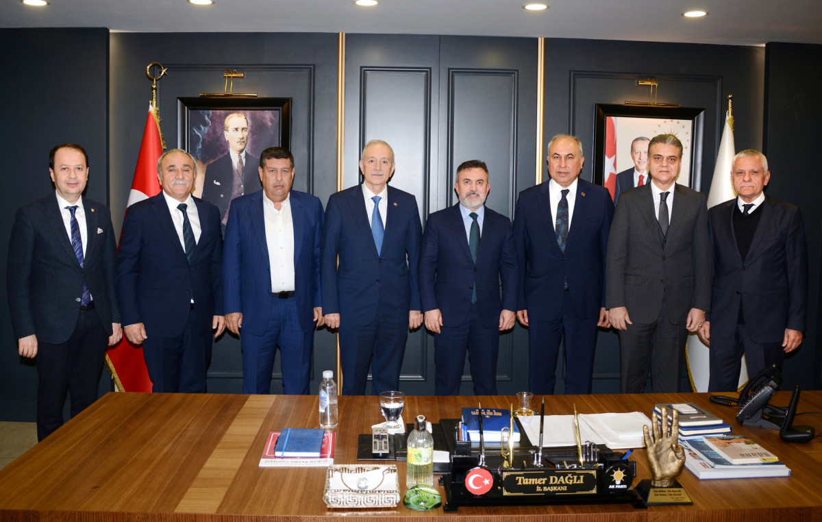 Adana Ticaret Borsası (ATB) Başkanı Şahin Bilgiç, Meclis Başkanı Osman Bağış, YK Üyeleri Hamit Tezcan, Yasin Milli, Şahin Güneşer ve Meclis Üyesi Seçil Sarısoy ile Genel Sekreter T. Gökhan Öztürk, AK Parti Adana İl Başkanlığına yeni seçilen Tamer Dağlı’ya ‘Hayırlı olsun’ ziyaretinde bulundu. ATB Başkanı Şahin Bilgiç, “Hepimizin görevi; İnsanların geleceğe aydınlık ve güvenle bakmalarını sağlamaktır” dedi.