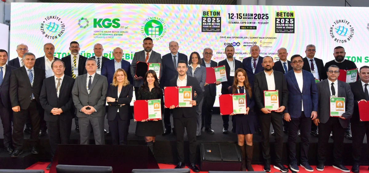 Türkiye Hazır Beton Birliği (THBB) tarafından ülkemize tanıtılan Beton Sürdürülebilirlik Konseyinin (The Concrete Sustainability Council) “Kaynakların Sorumlu Kullanımı Belgelendirme Sistemi” kapsamında belgelendirmeleri devam ediyor. Beton Sürdürülebilirlik Konseyinin (CSC) Belgelendirme Kuruluşu olan KGS İktisadi İşletmesi (KGS) tarafından yapılan denetimler sonucunda son 3 yıl içerisinde CSC Kaynakların Sorumlu Kullanımı belgesini alan 14 firmaya belgelerinin takdimi için bir tören düzenlendi. 13 Kasım 2025 tarihinde BETON 2025 Fuarı ve Zirvesi’nde düzenlenen törene, Türkiye Hazır Beton Birliği Yönetim Kurulu Başkanı Yavuz Işık, Beton Sürdürülebilirlik Konseyi Koordinatörü ve Sürdürülebilirlik Müdürü Cynthia Imesch, THBB Yönetim ve Denetim Kurulu üyeleri, THBB Genel Sekreteri Reşat Sönmez, THBB Teknik ve Sürdürülebilirlik Direktörü Koray Saçlıtüre, KGS Müdürü Çağlar Şaşmaz ve sektör temsilcileri katıldı.