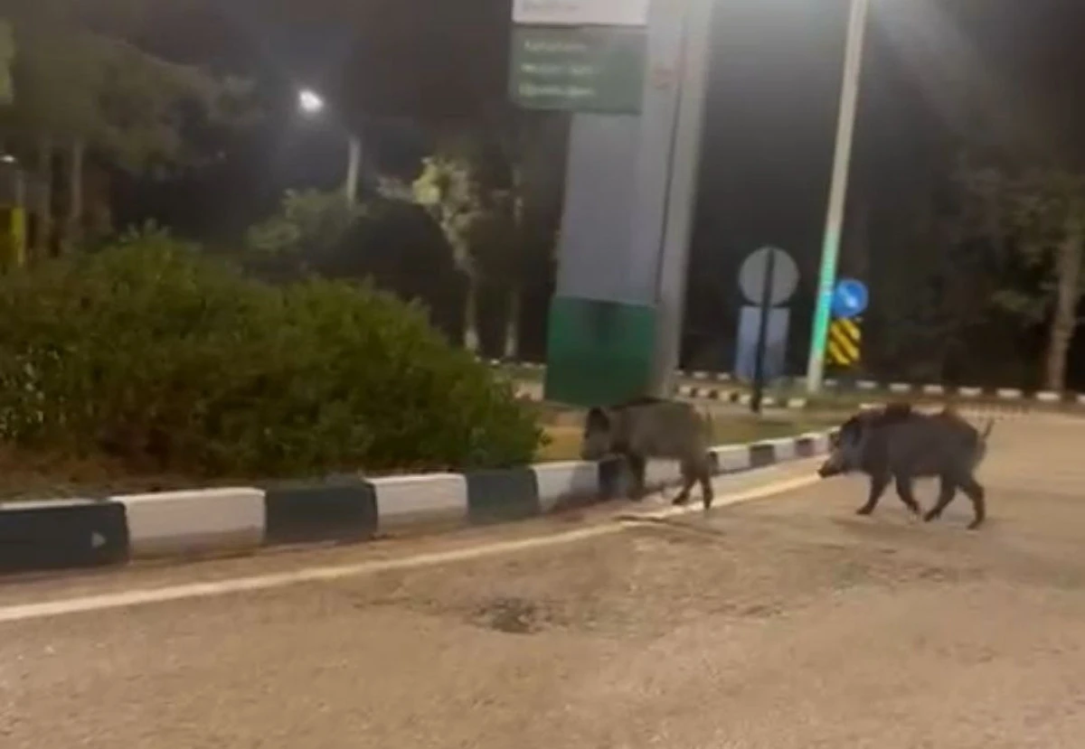 Çukurova Üniversitesi yerleşkesine sürü halinde giren domuzlar görüntülendi