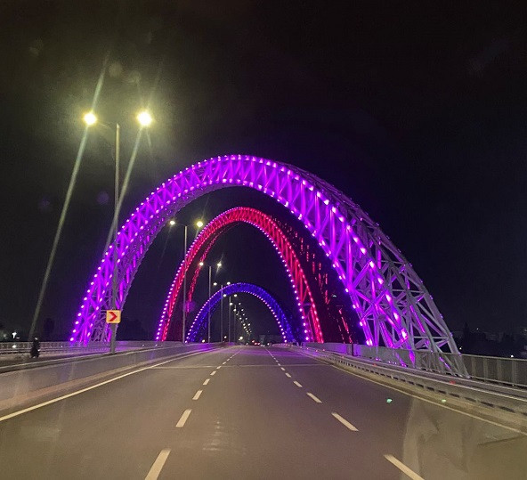 YAVUZLAR KÖPRÜSÜ VE BÜYÜK SAAT KULESİ ‘MOR ALARM' VERDİ