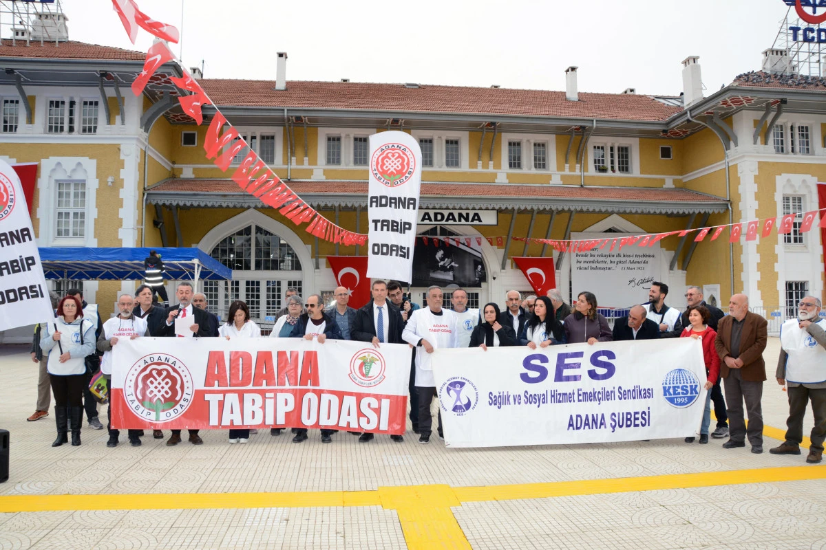 Öğle saatlerinde Kasım Gülek Köprüsü civarında bir araya gelen hekim, sağlık çalışanları Uğur Mumcu (İstasyon) Meydanına kadar yürüdü.