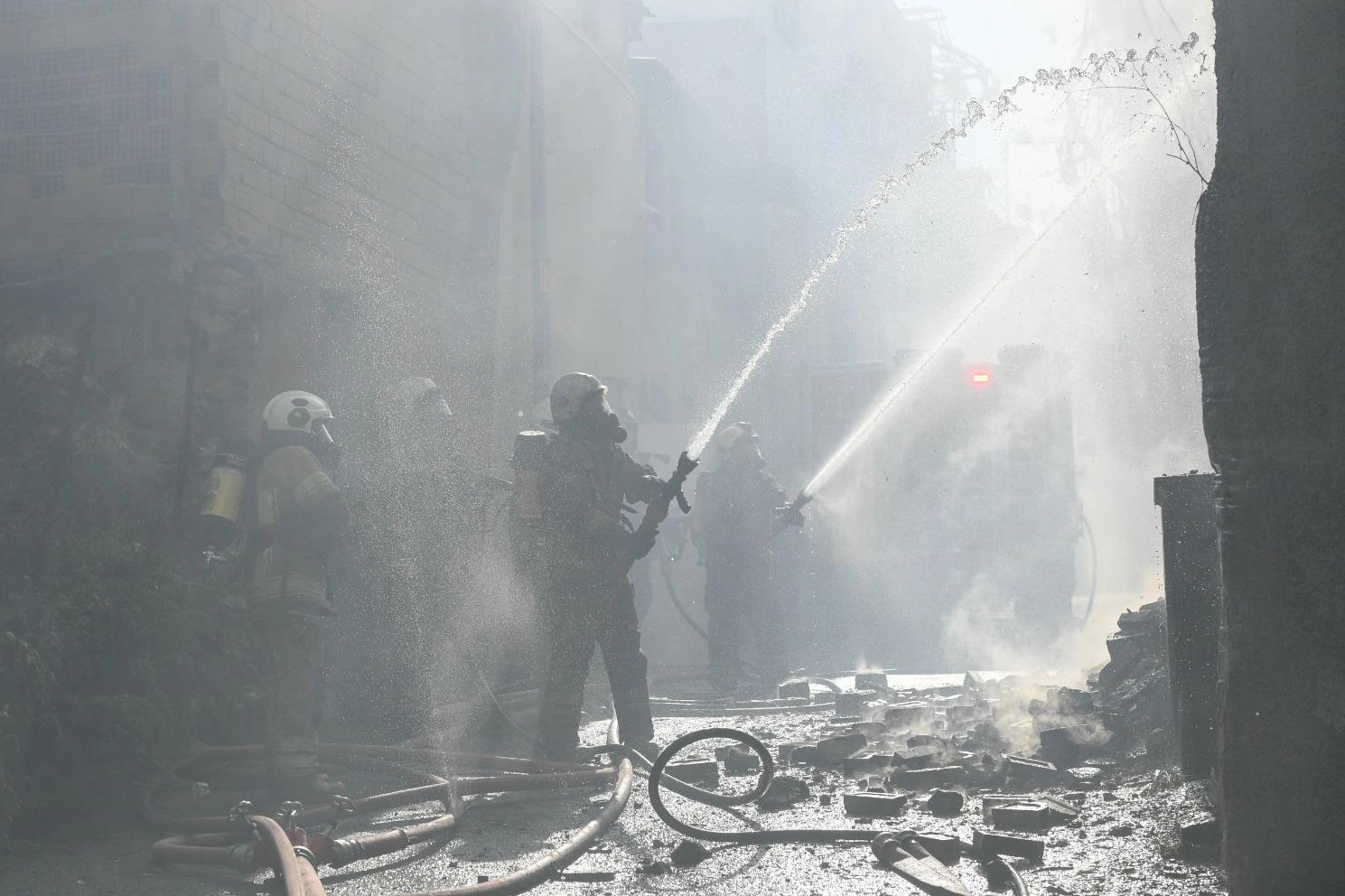 Ekiplerin olay yerine ulaşmasının ardından yangına anında müdahale başlatıldı. Sokağın dar, yapıların ise bitişik nizamda olduğu mahallede ekipler müdahaleyi güçlükle sürdürürken, alevlerin çevredeki binalara sıçrama riskine karşı adeta zamanla yarışıldı.