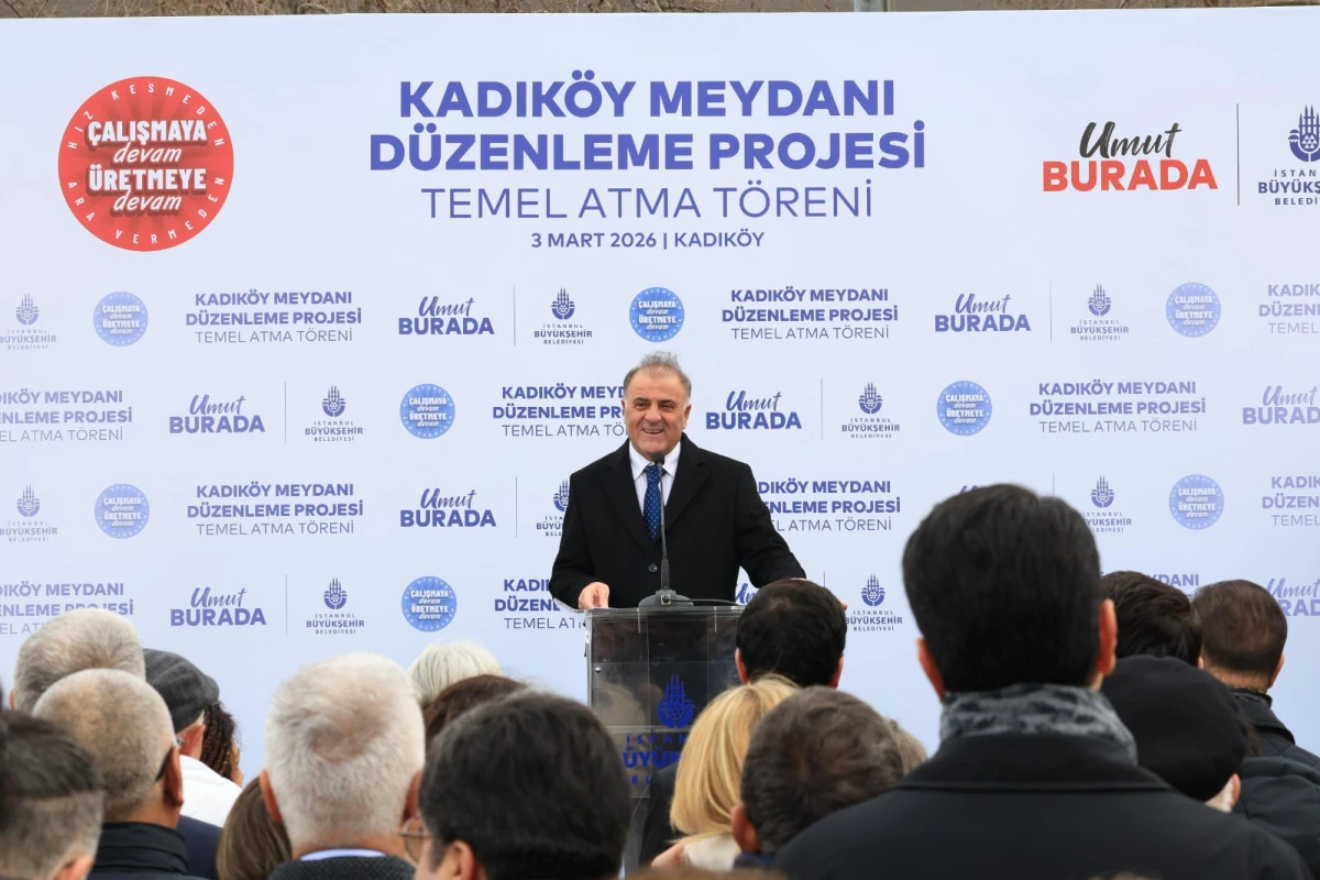 Kadıköy’ü daha düzenli, erişilebilir ve çağdaş bir kamusal alana dönüştürecek Kadıköy Meydanı Düzenleme Projesi’nin temel atma töreni, İBB Başkanvekili Nuri Aslan, Kadıköy Belediye Başkanı Mesut Kösedağı, Ataşehir Belediye Başkanı Onursal Adıgüzel ve İBB Genel Sekreteri Prof. Dr. Volkan Demir’in katılımlarıyla gerçekleştirildi. Kadıköy Rıhtım Tören Alanı’nda düzenlenen törende, Aslan ve Kösedağı birer konuşma yaptı. Aslan konuşmasına, “Sözlerime başlamadan önce; kalbi bizimle atan, aklı her daim İstanbul’da ve Türkiye’nin aydınlık geleceğinde olan bir ismin, kıymetli Büyükşehir Belediye Başkanımızın size selamlarını iletmek istiyorum. Aylardır hukuksuz bir şekilde Silivri’de tutuluyor. İstanbul’un, 5 yıl içinde 3 kez seçilmiş Belediye Başkanı, aynı zamanda da bizim cumhurbaşkanı adayımız. O, İstanbul’u ve sizi çok seviyor. Ben biliyorum ki İstanbullular olarak siz de onu seviyorsunuz,” sözleriyle başladı.