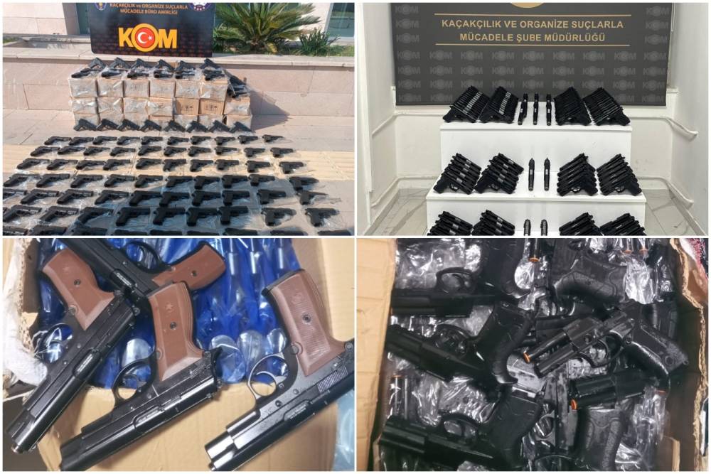 Adreslerde ve araçlarda yapılan aramalarda, 10 ruhsatsız tabanca, 5 ruhsatsız av tüfeği, 3 bin 102 kurusıkı tabanca, 14 bin 254 tabanca şarjörü ve 19 bin 411 silah parçası ele geçirildi.
