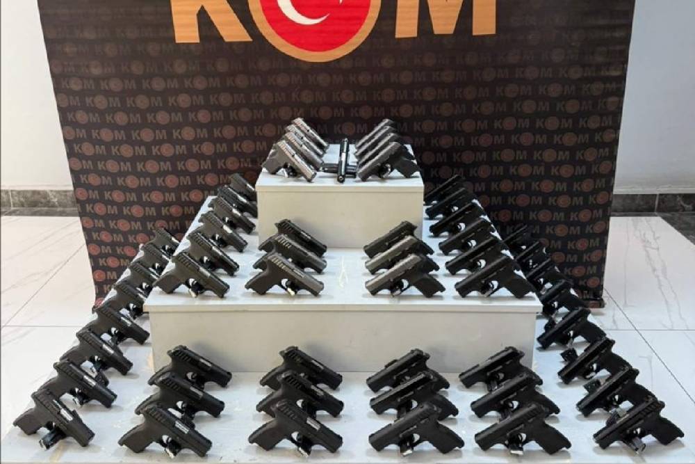 Silah ticaretine yönelik yürütülen çalışmalar kapsamında araçta yapılan aramada bir yolcuya ait 2 valizde ruhsatsız 55 adet tabanca ve 55 adet şarjör bulundu.